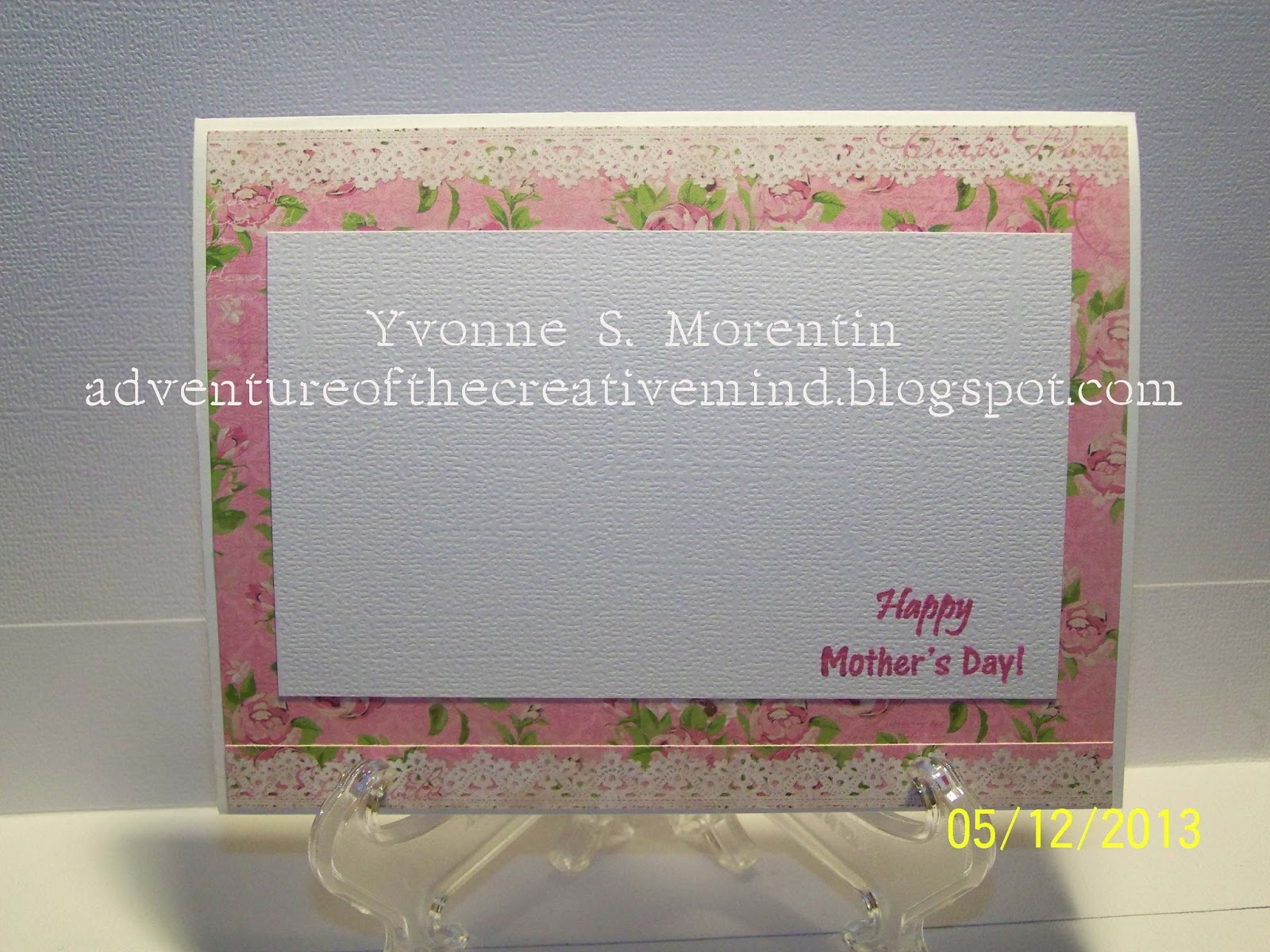 Hi Yvonne! That is a very sweet card that a Mom would love. I like how you embellished the doily with pearls and flowers. Thanks for joining us over at Sugar Creek Hollow!